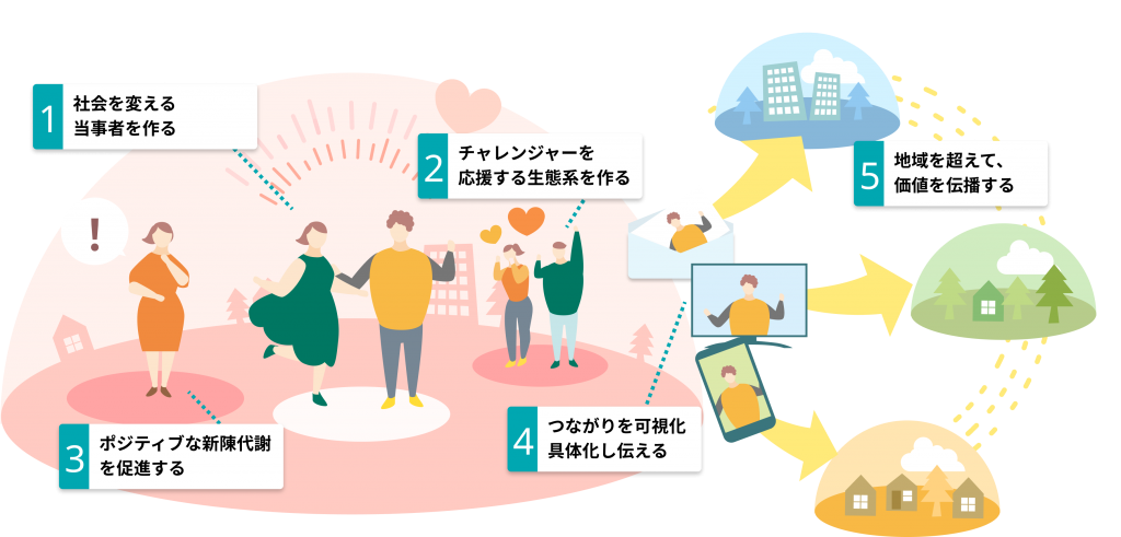 私たちのまちには、”誰か”や”何か”に頼るのではなく、社会を変えたい、もっと良くしたい、と考え行動する当事者が必要です。私たちは、社会の課題とその解決策を遠い世界の出来事ではなく、”自分の身の回りの、ごく当たり前のアクション”として捉えることができる当事者を増やしていきます。